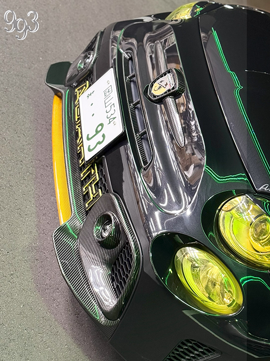 ★純正比で左右の張り出し部分の一番多い箇所が約4cm前方に張り出していて、重厚さと立体的でスポーティーなイメージが完成します。