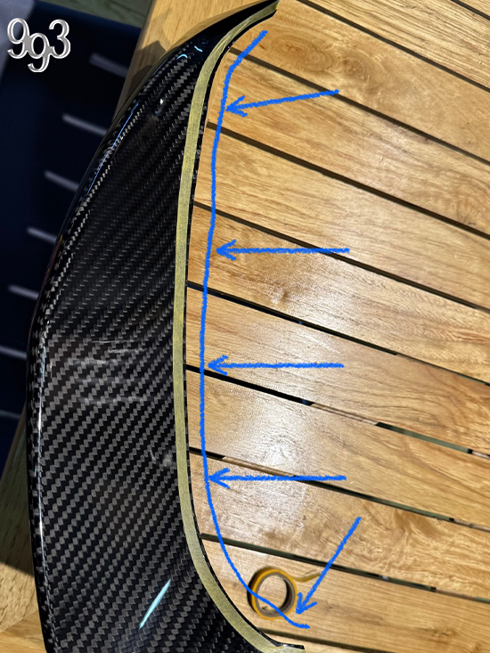 施工前に製品裏面テープを上から押さえてカーボンにしっかり密着させてください。